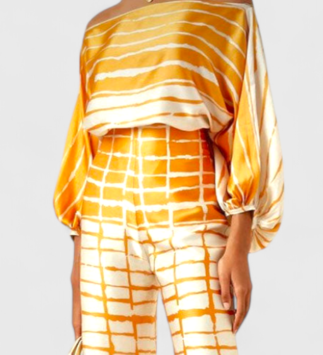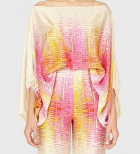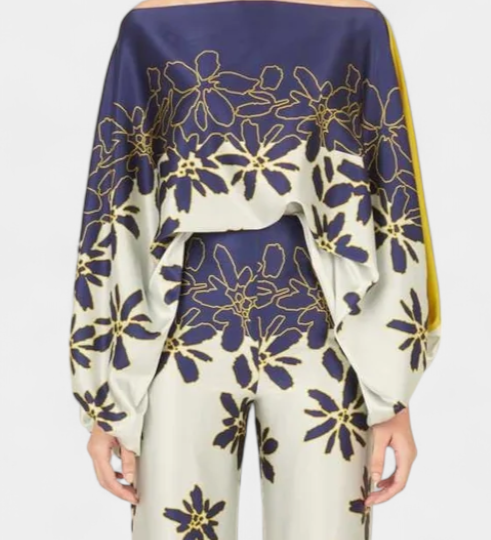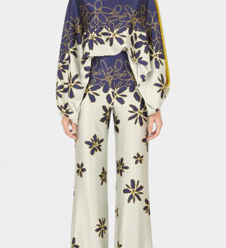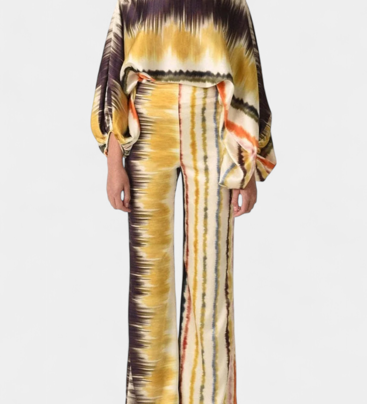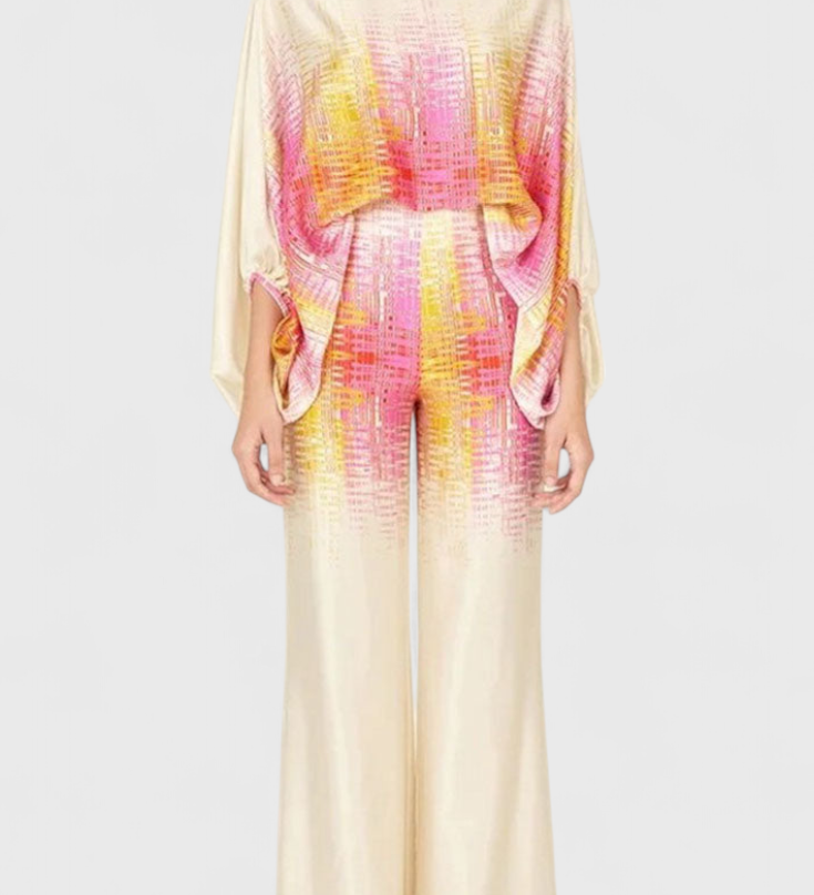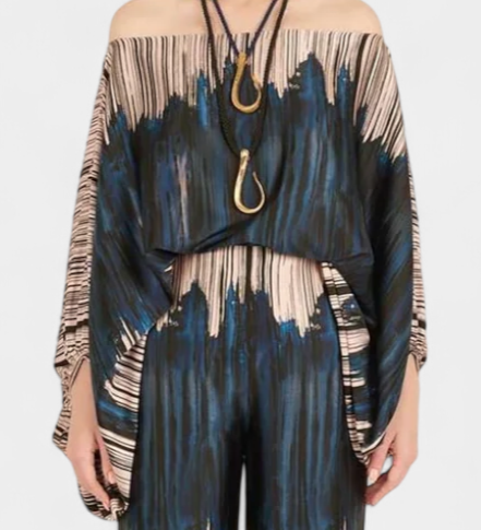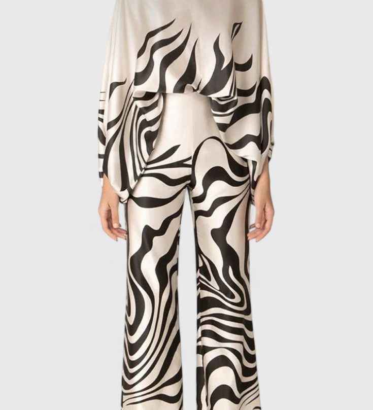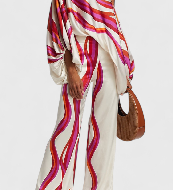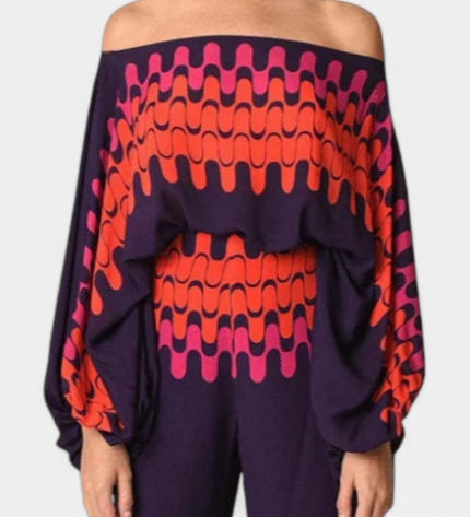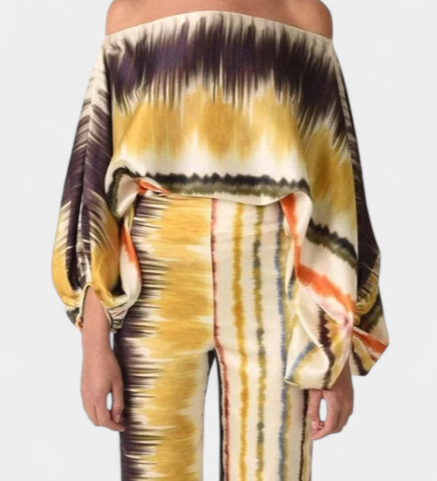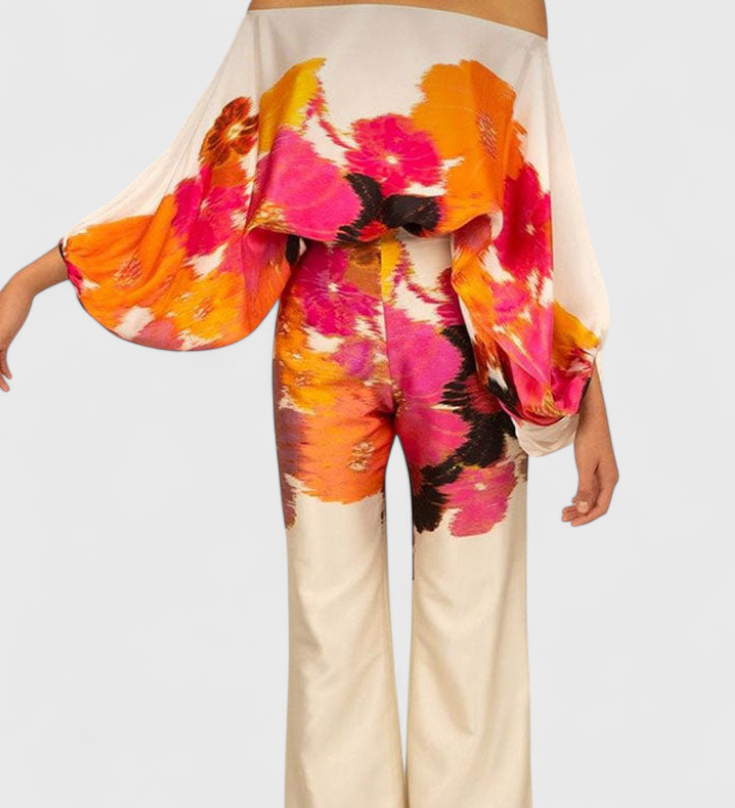 Sybella Conjunto de Dos Piezas con Hombros Descubiertos y Pantalones Amplios Estampados