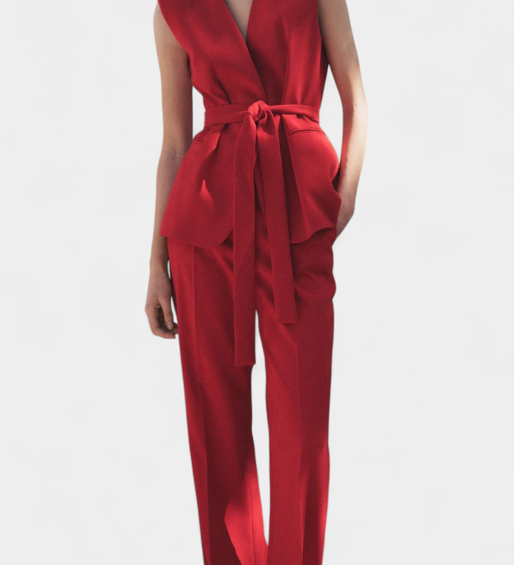 Carlen Conjunto Clásico de Chaleco con Cinturón y Pantalón de Pierna Ancha