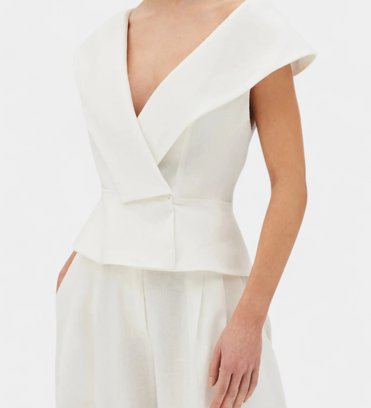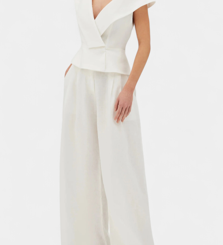 Bernadina Conjunto de Lino con Top de Abertura Frontal y Pantalón de Pierna Ancha