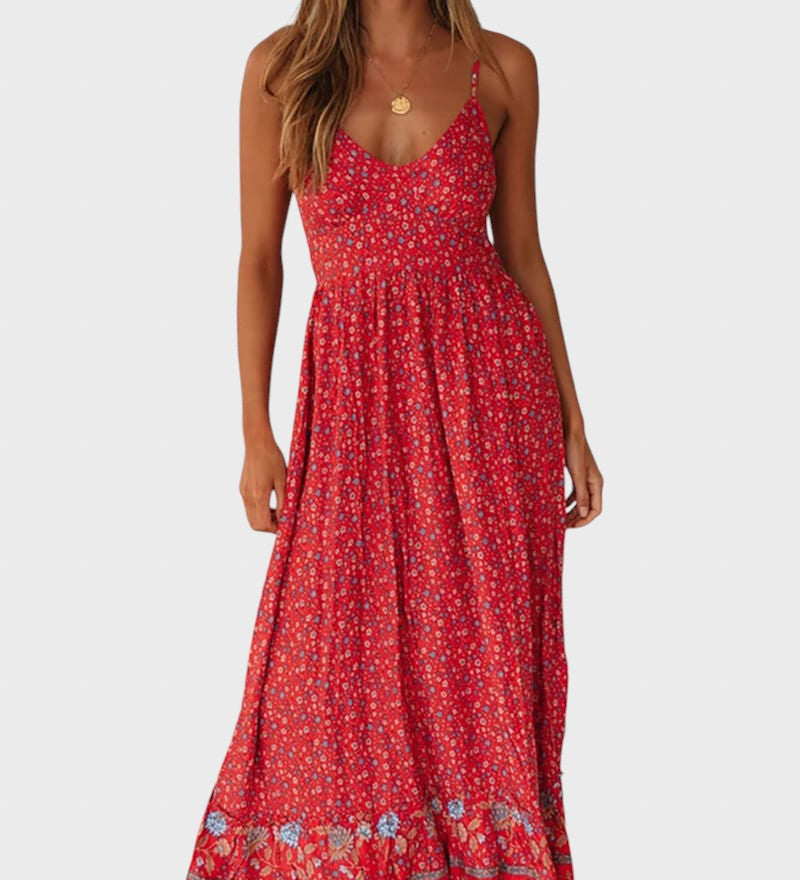 Kiriaki™ - Vestido maxi de flores con tirantes finos