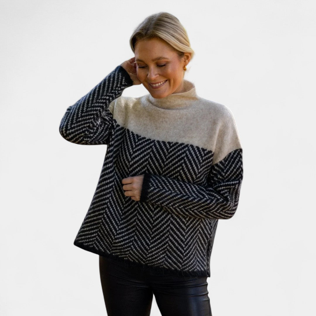 Para quienes aprecian la textura, esta pieza ha sido confeccionada a la perfección. Elaborado con tejido finamente hilado, este suéter de cuello alto ofrece una sensación suave y lujosa sobre su piel. Más allá de la textura, hemos realzado este modelo con acentos de espiga, creando una prenda indispensable que se siente irresistiblemente suave. Disfrute del confort celestial que lo envuelve desde el cuello hasta las muñecas.