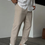 Diseñados para el hombre moderno que valora tanto la comodidad como la sofisticación, los Christopher son mucho más que unos simples pantalones. Su textura suave, corte preciso y aire elegante los convierten en la elección perfecta para elevar cualquier outfit con discreción y distinción. Una pieza clave que se adapta tanto a un look casual refinado como a un estilo más formal.