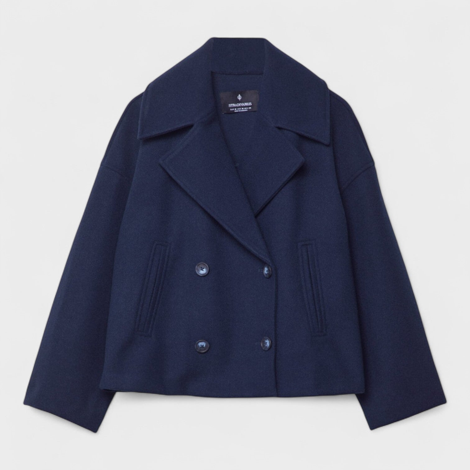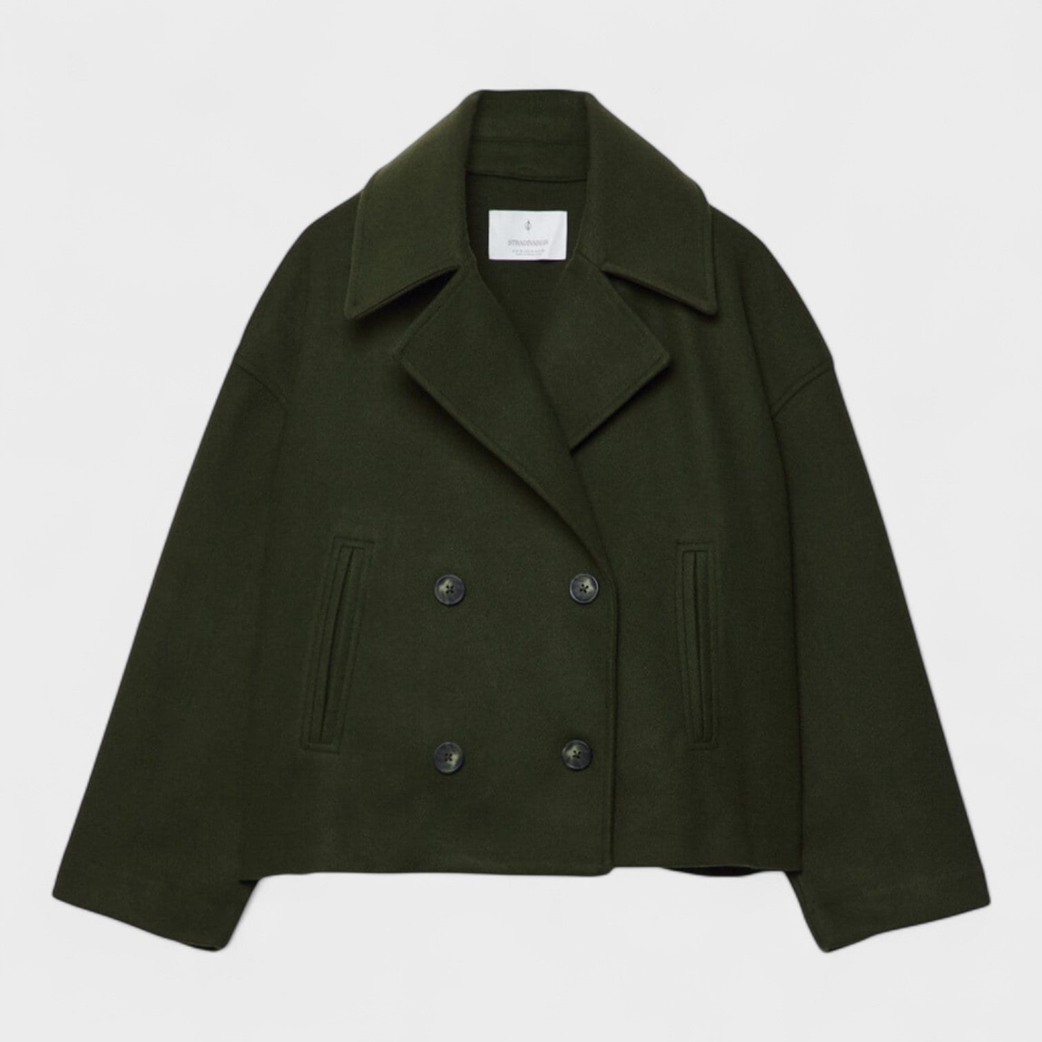 Con un diseño moderno y estructurado, este abrigo corto con abotonado doble es el toque final ideal para un look sofisticado y urbano. Su silueta amplia y cuello marcado confieren elegancia sin esfuerzo, mientras que el tejido grueso garantiza comodidad e impacto. Perfecto para combinar con jeans, faldas o prendas de sastrería, adaptándose a diferentes estilos y estaciones.