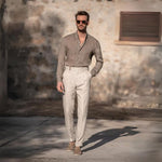 El pantalón de lino Gold Coast está pensado para los hombres que aprecian el estilo sin esfuerzo y la comodidad superior. Confeccionados en lino 100 % de primera calidad, estos pantalones ofrecen un ajuste transpirable y aireado, perfecto para ocasiones de clima cálido, elegancia informal o estilo smart-casual.