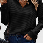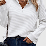 Helene Jersey de Cuello en V con Cremallera y Manga Larga