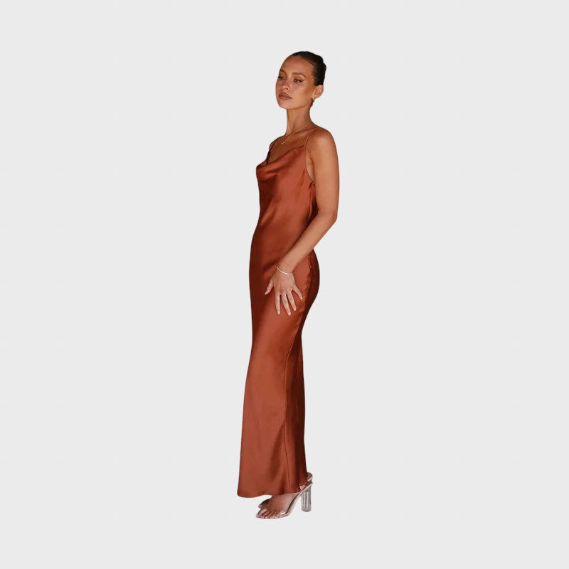 Descubre el brillo minimalista con este deslumbrante vestido maxi. Es la personificación de la sofisticación sin pretensiones, centrada en un corte y textura de calidad.