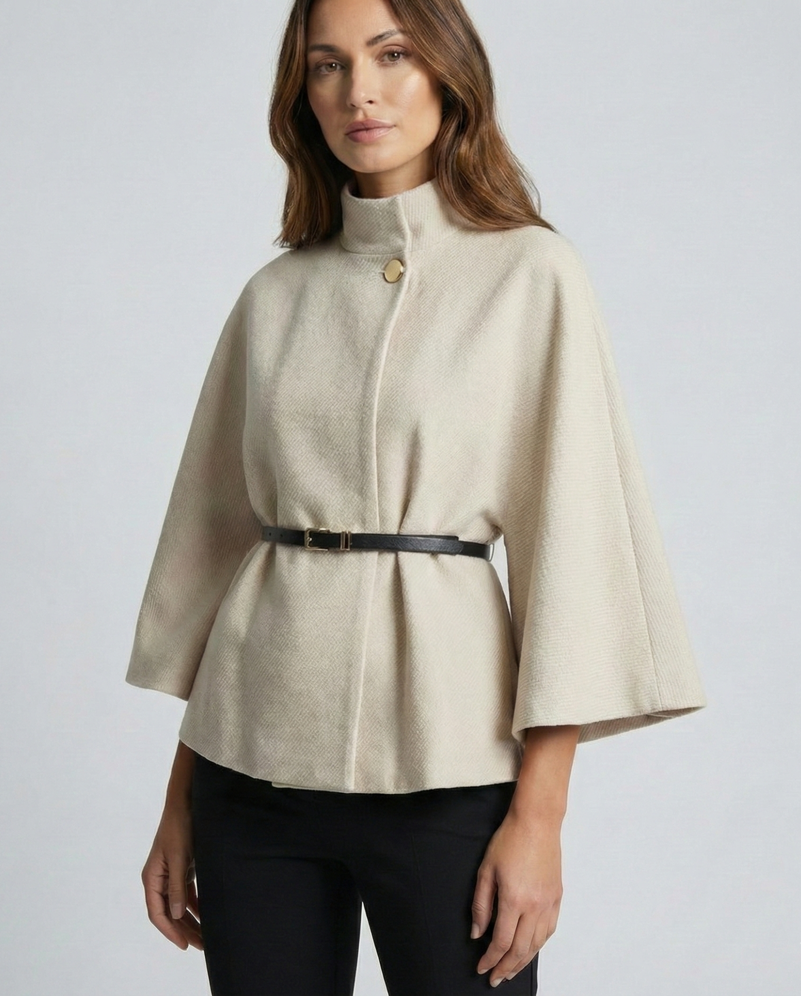 Milagros - Poncho Elegante para Mujer con Cinturón y Corte Estilizador