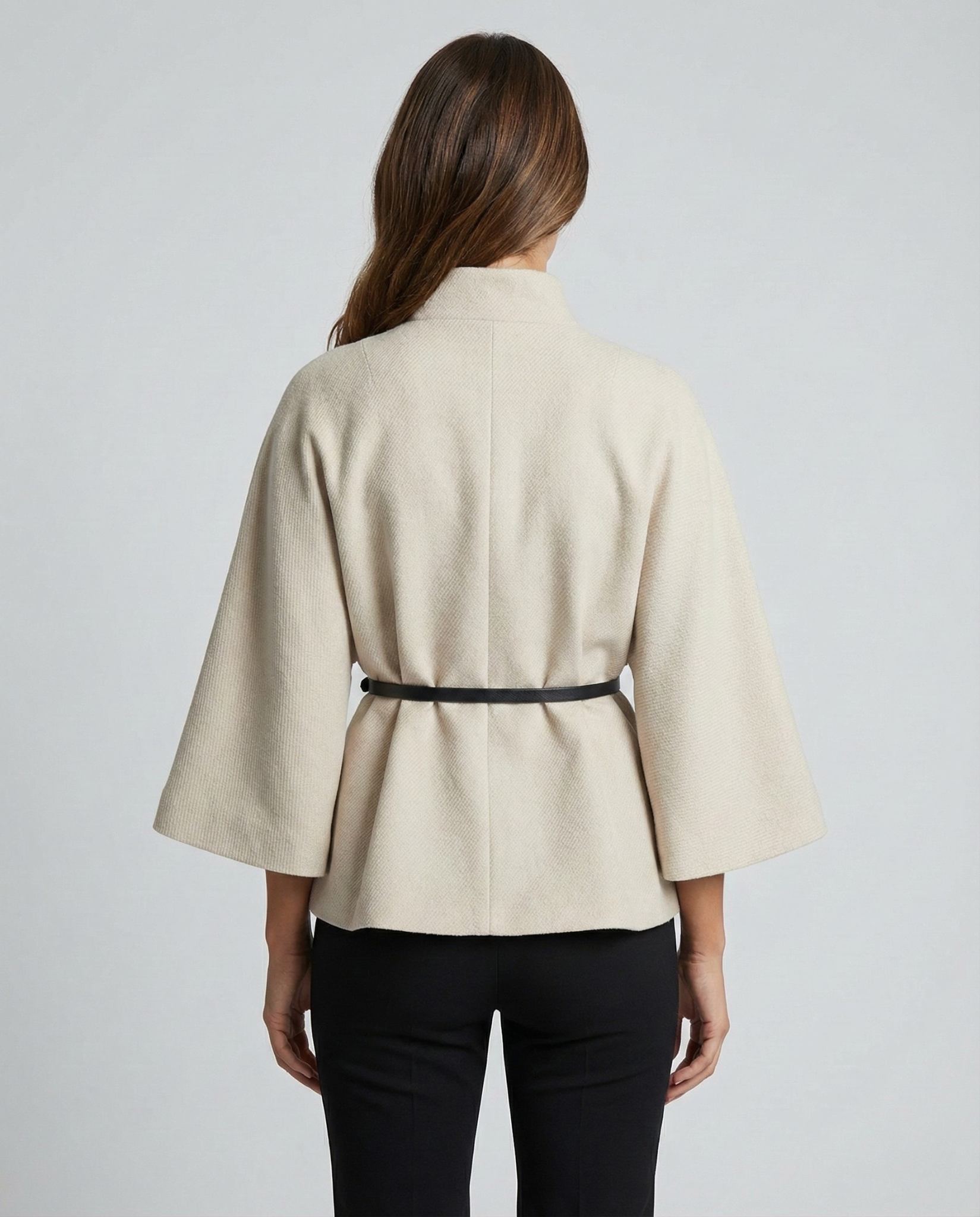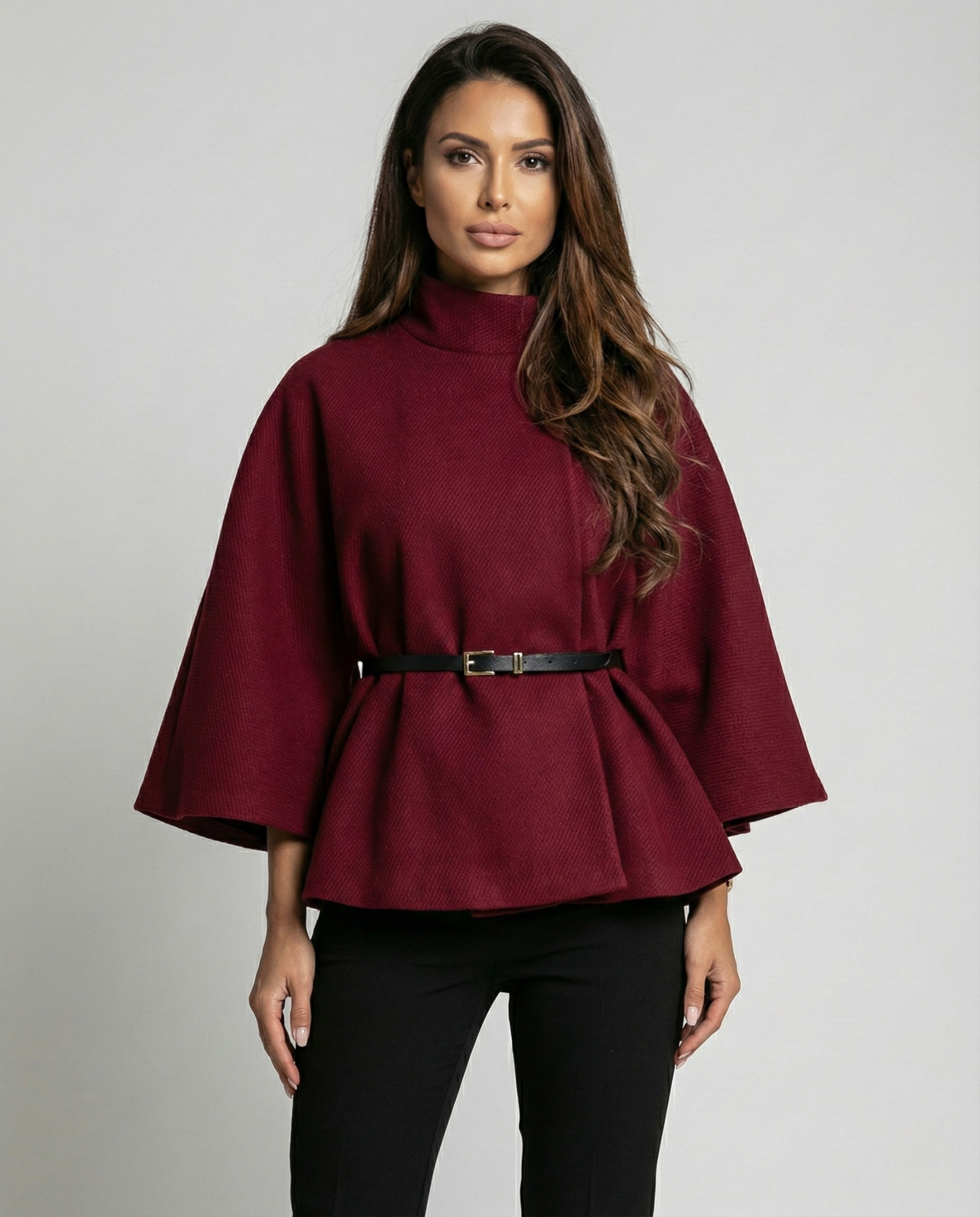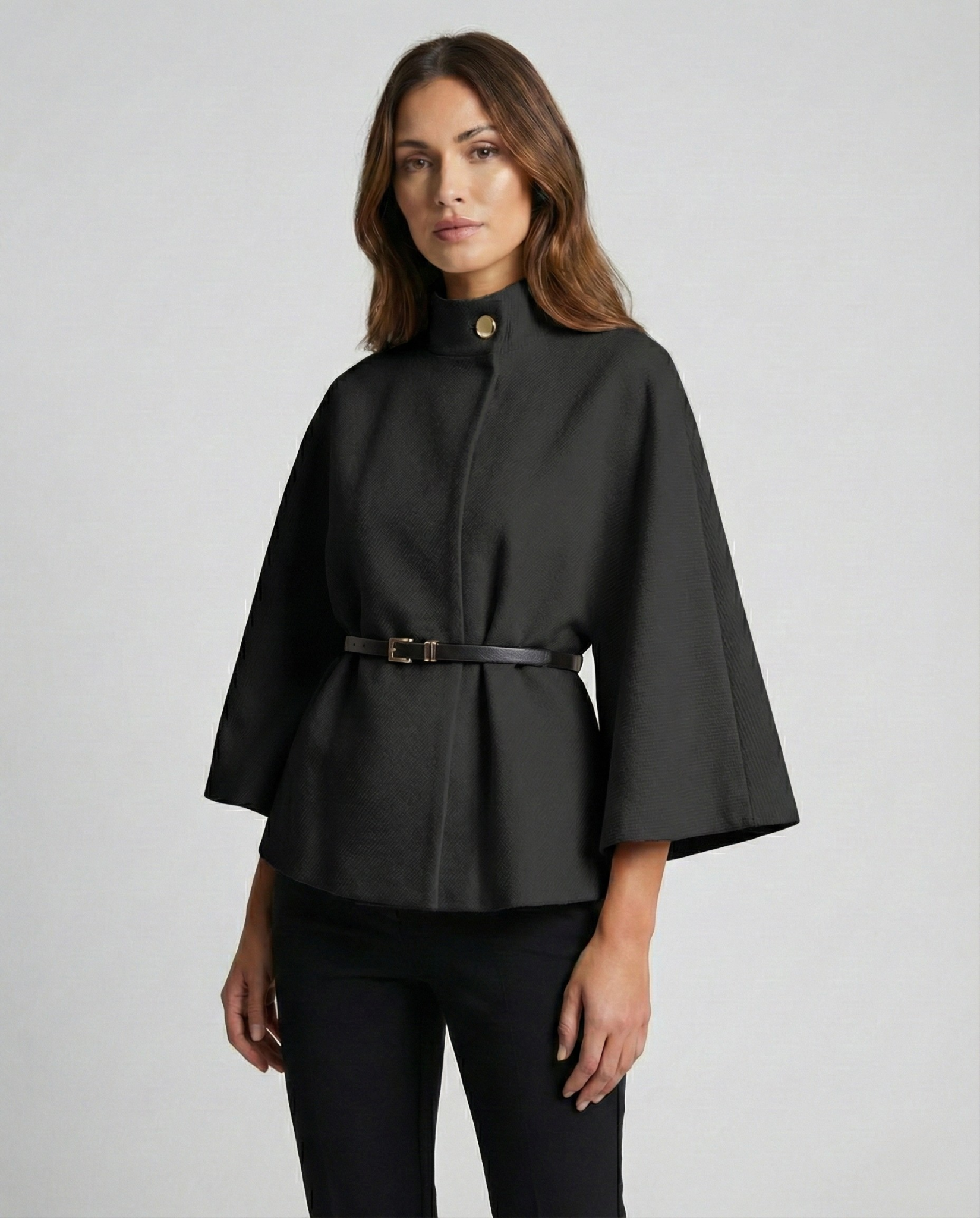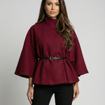 Poncho elegante para mujer con diseño estructurado y corte moderno que realza la silueta. Su tejido suave y de alta calidad ofrece abrigo ligero y una caída impecable, ideal para entretiempo y días frescos. El detalle del cinturón aporta un ajuste estilizador y versátil, permitiendo crear looks sofisticados tanto para el día a día como para ocasiones especiales.