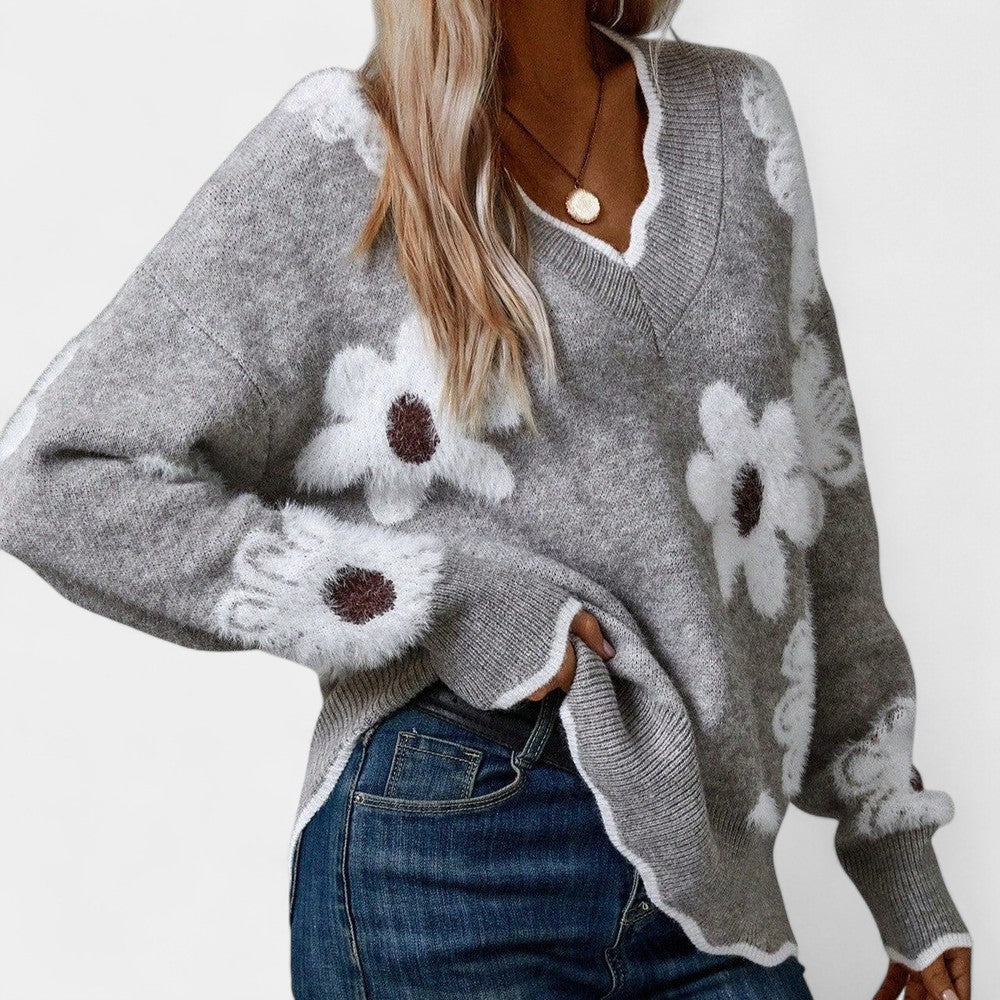 El suéter Thea combina comodidad acogedora con elegancia sin esfuerzo, convirtiéndolo en una pieza destacada para los días fríos. Diseñado con un favorecedor escote en V y un elegante estampado floral, aporta encanto y sofisticación a tu guardarropa diario. Suave, ligero y fácil de llevar, Thea te mantiene abrigada sin sentirse pesado: perfecto tanto para momentos casuales como para ocasiones más arregladas.